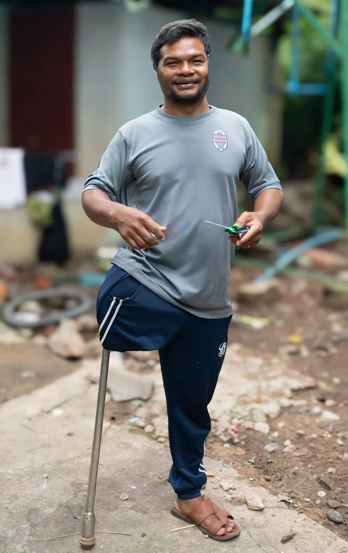 Bel is truly one of the most resilient individuals I have ever met. He lost his entire family to Pol Pot’s regime and found himself living alone at age 7. He was tending a neighbor’s cows to gain access to food when he stepped on a landmine. He managed to get himself through school and speaks fluent English. He works with his wife making and selling the jewelry she designs. She is recovering from a stroke. Despite the many hardships he has endured, he is a warm, affable, and kind man. I was introduced to him by Catherine Karnow whose photography trips in Cambodia include a day of philanthropy. I totally admire Bel and have maintained contact with the family.